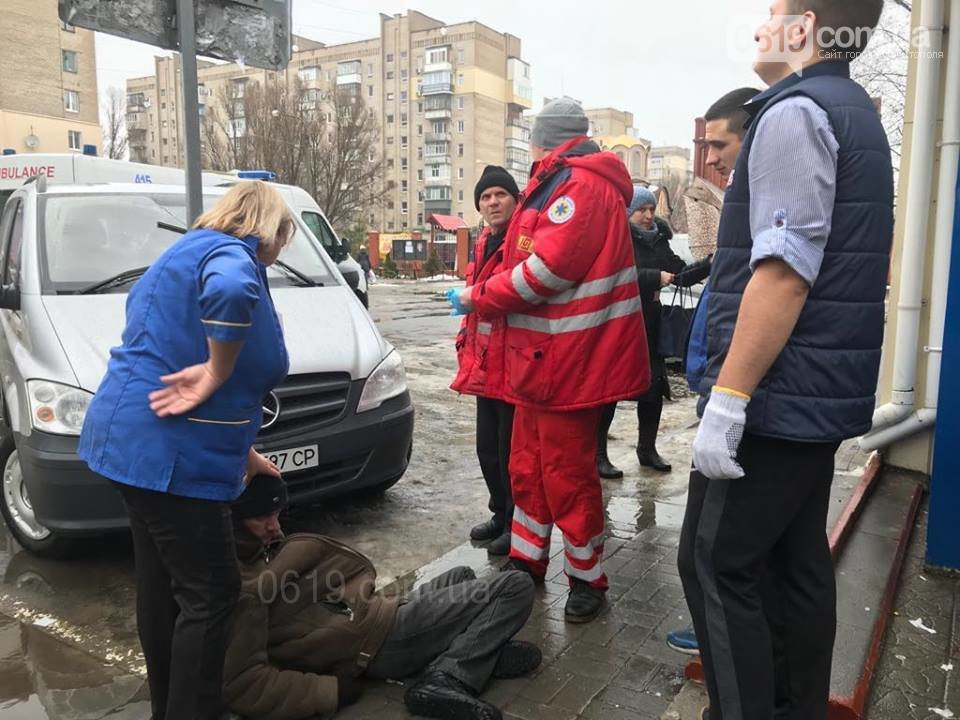 Сотрудники супермаркета помогли медикам довести мужчину до кареты скорой помощи.