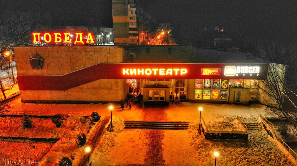 В этот раз в объектив камеры Дмитрия Антифеева попал всем известный кинотеатр Победа. Мужчина запечатлел вид ночного здания, подсвеченного и занесенного снегом. Подписал он его как: "Самое любимое заведение города ❤️🎞☕️".