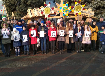 Присоединились к флешмобу и участники акции «Різдво разом», греко-католическая церковь, хор церкви «Благодать». Участником мог стать каждый желающий. Горожане все вместе спели традиционную колядку.