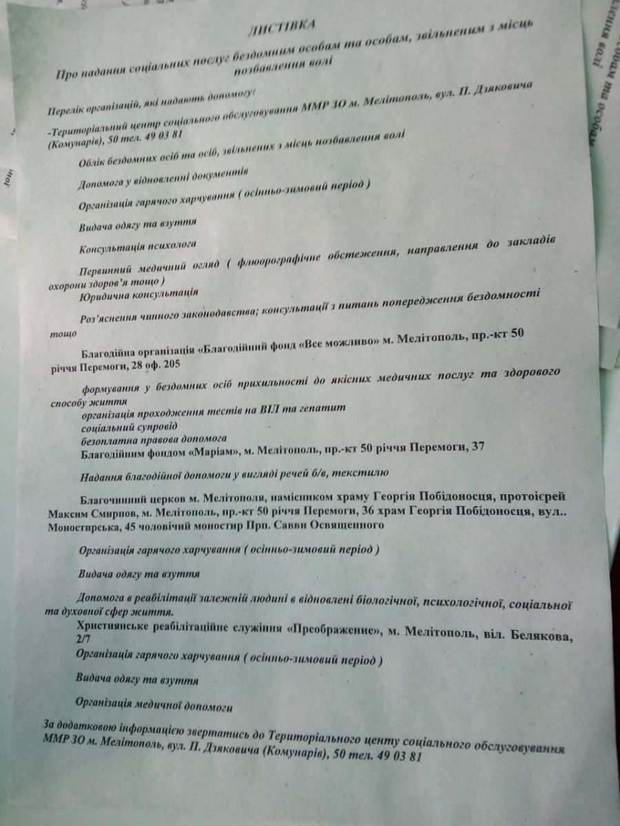 В центре Мелитополя пригрели бездомных (ФОТО, ВИДЕО)