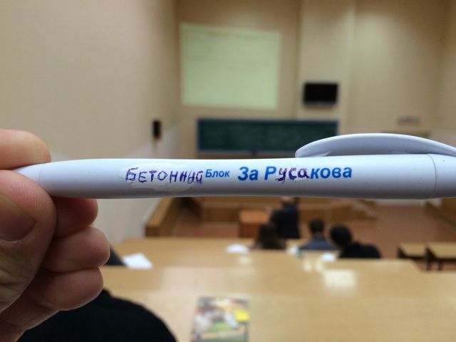 - Да, это было весело! Я сидел на парах, а тогда как раз самая жесткая борьба шла между двумя кандидатами – Сергеем Минько и Александром Рябиковым. Традиционно на выборах же раздают всякую агитпродукцию, вот и у меня была ручка «За Рябикова». Ну вот, я сидел и разглядывал ручку. Подумал, что «Рябиков» очень похоже на «Русаков» – всего пару букв исправить. Участвовать в выборах, конечно, не стал, но через соцсети в шутку обратился к друзьям и подписчикам: голосуйте за меня. И получилось: присылали немало фото бюллетеней, где фамилия одного из кандидатов была исправлена на мою. Было весело.