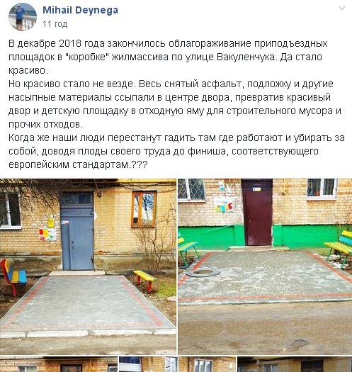 Когда же наши люди перестанут гадить там где работают и убирать за собой, доводя плоды своего труда до финиша, соответствующего европейским стандартам.???»