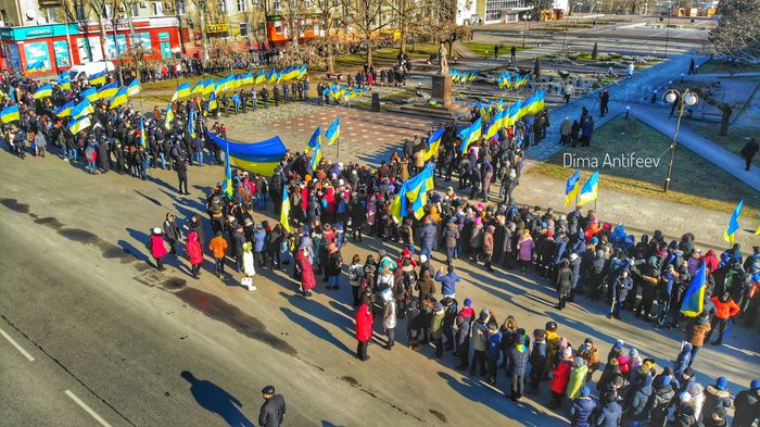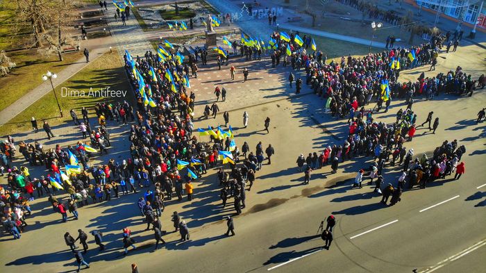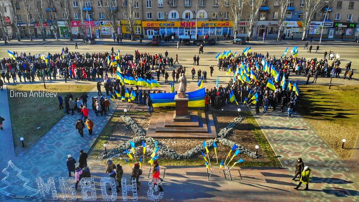 Как мелитопольцы отметили День соборности, запечатлел Дмитрий Антифеев. С высоты птичьего полета автор фото снял, как сотни мелитопольцев выстроились в колонну на проспекте Б. Хмельницкого. А также объединение двух колонн на площади Победы.
