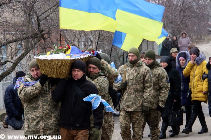 Пронизывающий ветер рвет сине-желтые флаги, уносит в сторону сигаретный дым. Мужчины в "пикселе" курят, тихо переговариваются. И лишь изредка замолкают - когда слышится тихий плач. Тот, который громче ветра и страшнее разрывов снарядов. Плач матери, потерявшей сына, плач жены, потерявшей любимого...