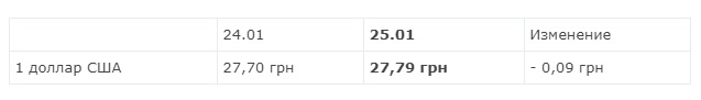 На пятницу, 25 января, Национальный банк Украины (НБУ) установил такой официальный курс доллара США к гривне: