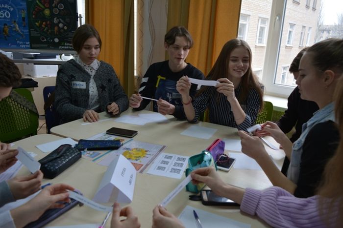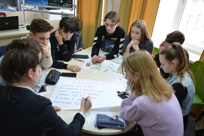 Во время проведения игры на знакомство заданием 9-классникам, для которых и проводился тренинг, было представить свои лучшие качества и увлечения. Оказалось, ученики школы № 15 эрудированные и активные, любят читать художественную литературу, увлекаются историей, стремятся хорошо учиться, играют в футбол и занимаются танцами.