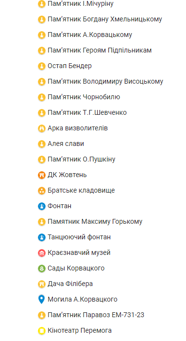И для начала ребята создали карту с помеченными на ней достопримечательностями нашего города. Таких набралось 23 объекта. Среди них дача Филибера, краеведческий музей, Аллея славы, ДК «Октябрь», различные памятники и др.