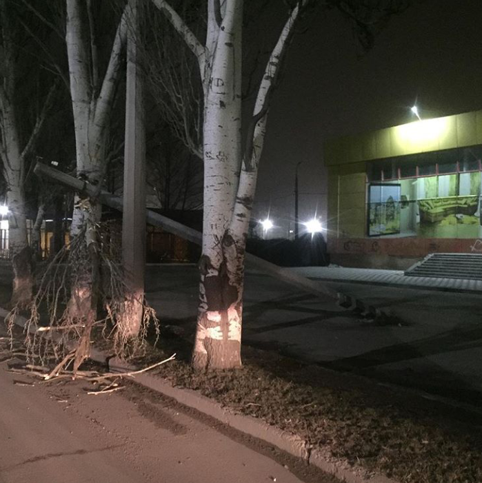 Упавшая электроопора была расположена около "Дома мебели" напротив спортшколы.
