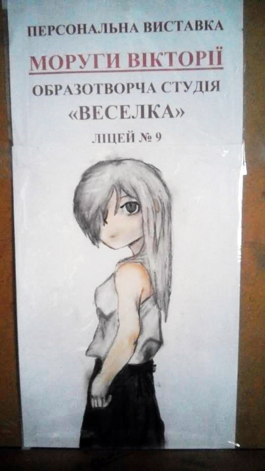 Эта талантливая девочка посещает изостудию «Радуга» лицея № 9 под руководством Владимира Антонюка. Виктория рисует свои картины масляными красками, сухой пастелью, цветными карандашами. Талантливая художница работает в направлении сюрреализм, в котором в свое время писали такие известные художники, как Сальвадор Дали, Рене Магритт, Пабло Пикассо, и др.