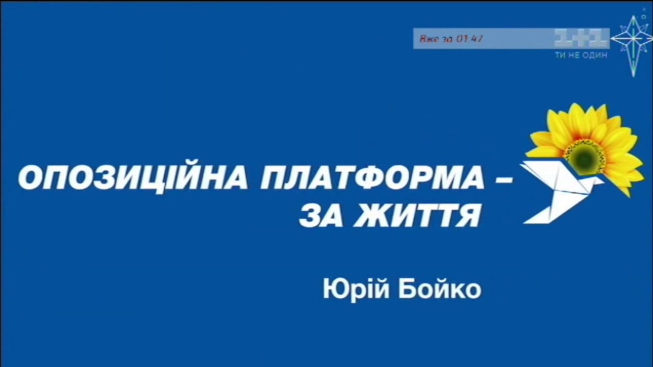 Юрий Бойко пошел на выборы как самовыдвиженец, но использовал неизменно сине-белую гамму Партии регионов. После распада Оппоблока на две части, у следующей партии Бойко "Оппозиционная платформа - За жизнь", появилась новая деталь. Это часть подсолнуха совмещенная с голубем мира. Бойко также использует ее в избирательной кампании.