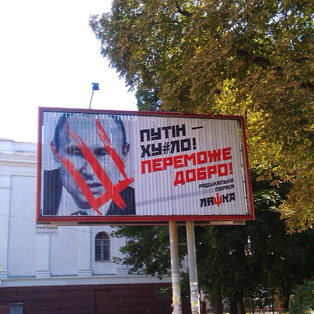 Бабинец разбирает рекламу на детали: по его мнению, буквы расположили под острым углом для придания конфликтности избирательным лозунгам. Буква "Ш", стилизованная под вилы, создает ощущение агрессии во всех материалах. В целом стилистика кампании Ляшко, как и главного героя, - броская, кричащая, которую сложно игнорировать.