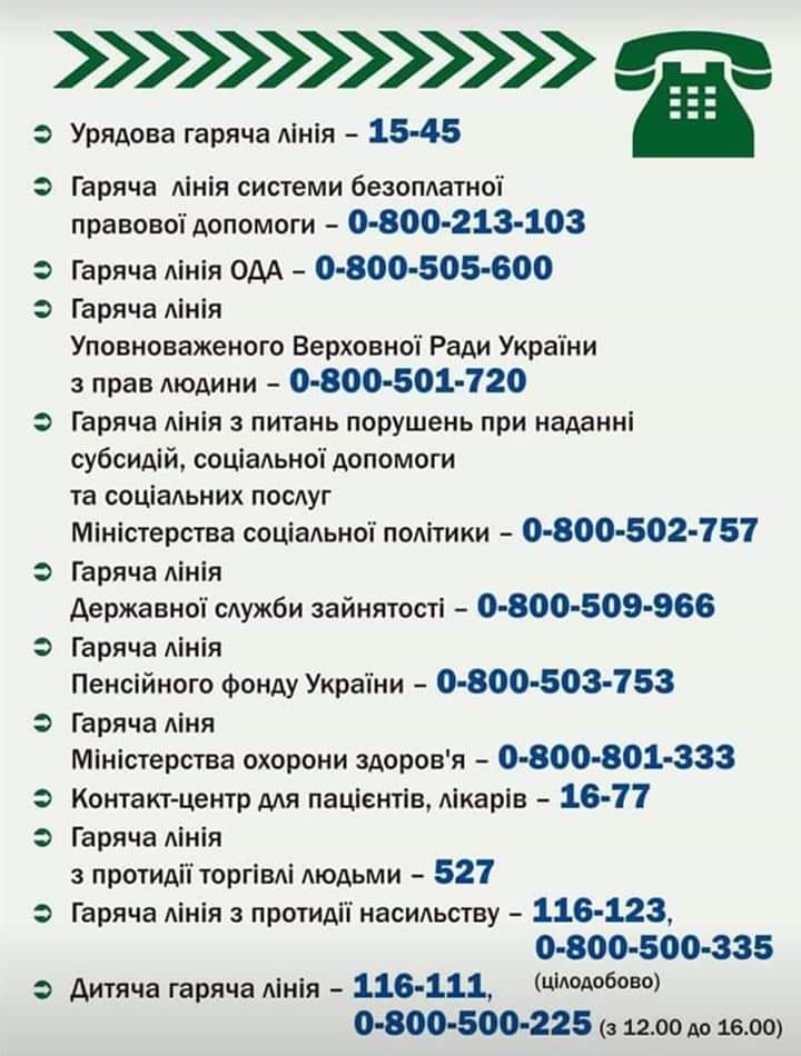 Систематизированная информация об этом появилась недавно в интернете в виде фото с названиями горячих линий, раскрывающих их назначение, и номерами телефонов. Его и публикуем.