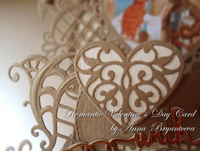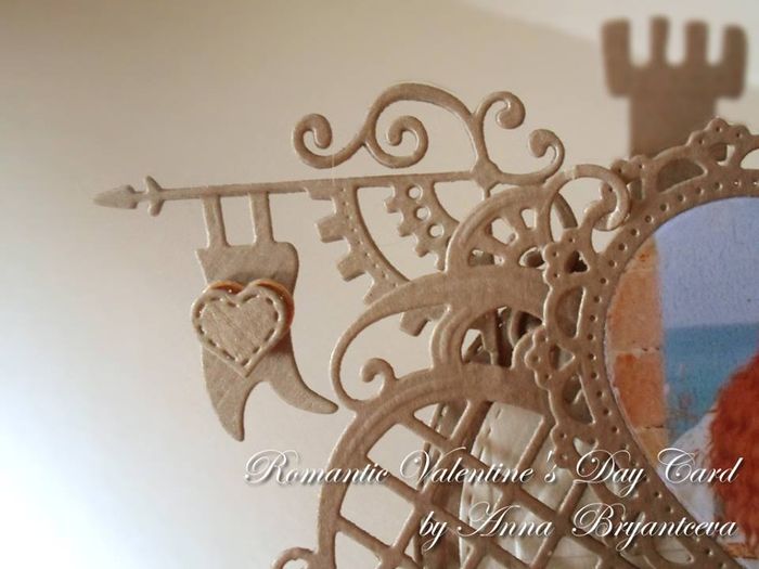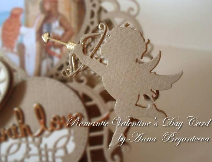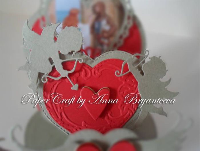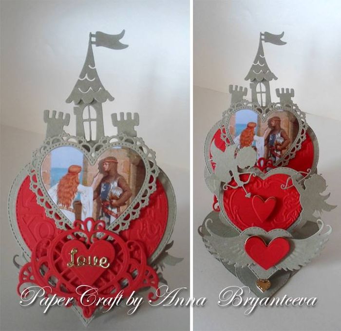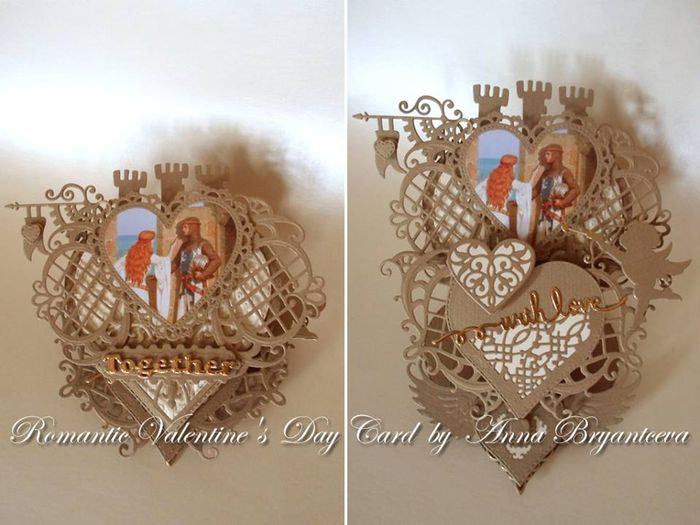 Картина стала основой, но Александр и Анна добавили множество элементов, создав чуть ли не замок, где происходит вышеописанное действие, и дополнив это символами Дня влюбленных - сердцами и купидонами. Более того, валентинка раскладывается, значительно видоизменяясь.