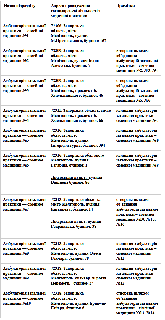 Как сообщают в Мелитопольском горздравотделе, 1 февраля произошли некоторые изменения в сети амбулаторий общей практики - семейной медицины: