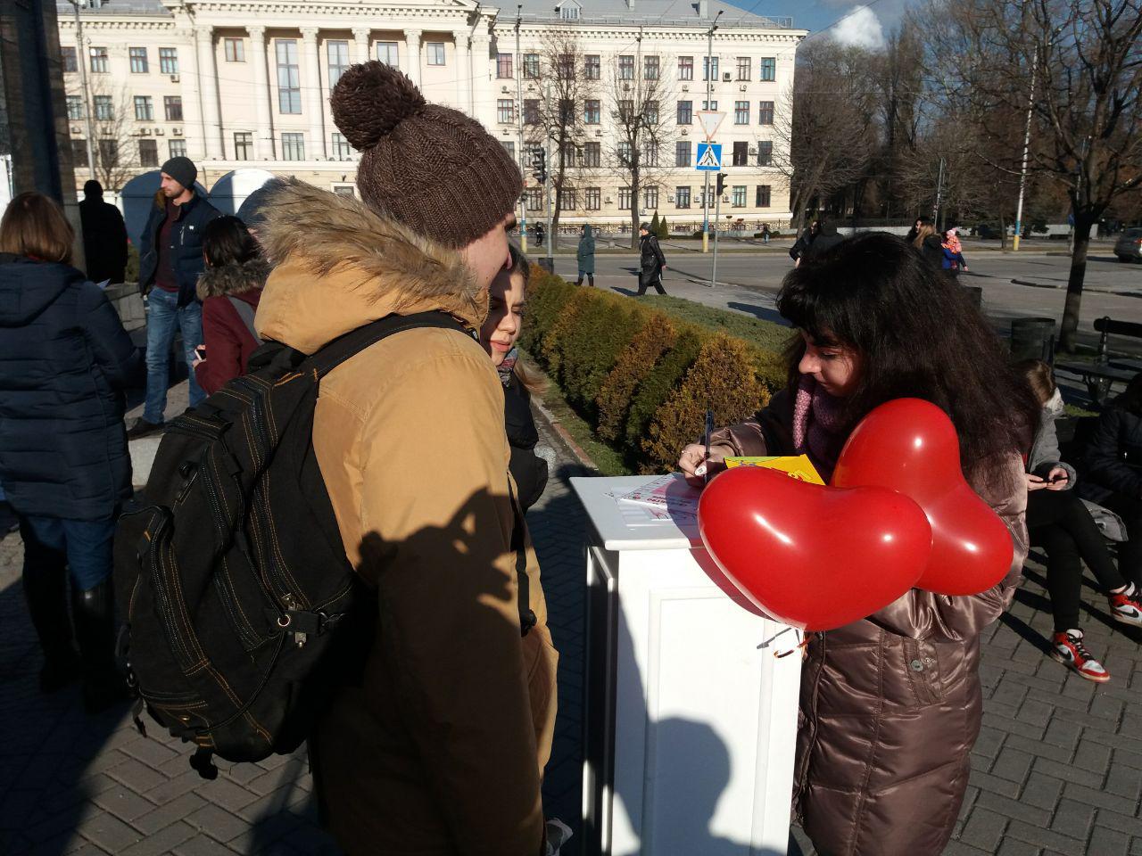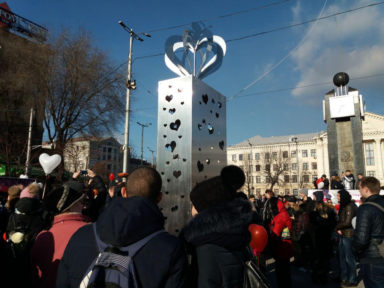 В Запорожье сегодня, 14 февраля, в День влюбленных, открыли Стелу влюбленных на бульваре Шевченко.