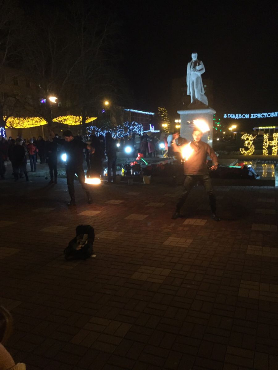 Фаер-шоу на главной площади Мелитополя в День святого Валентина