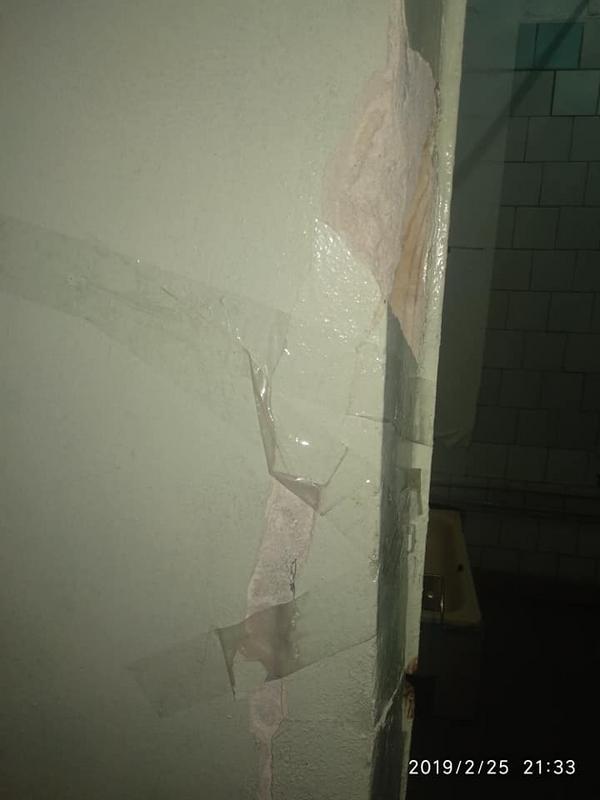 Наиболее угнетающим является фото, на котором куски отпавшей штукатурки приклеили скотчем.