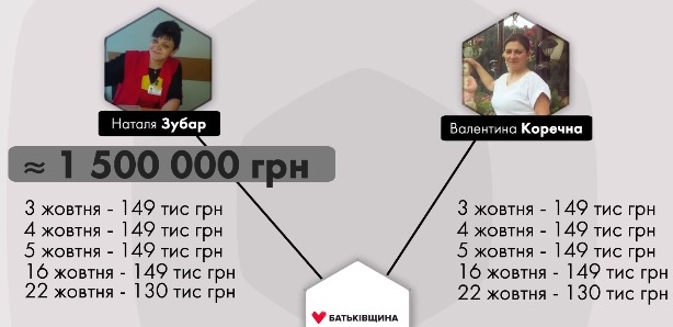 Подобные случаи расследованы и в других областях, где пенсионеры и другие люди, которые не выглядят богачами, а также небольшие фирмы с признаками фиктивности перечисляли на счета Батькивщины крупные суммы - по 2 млн грн.