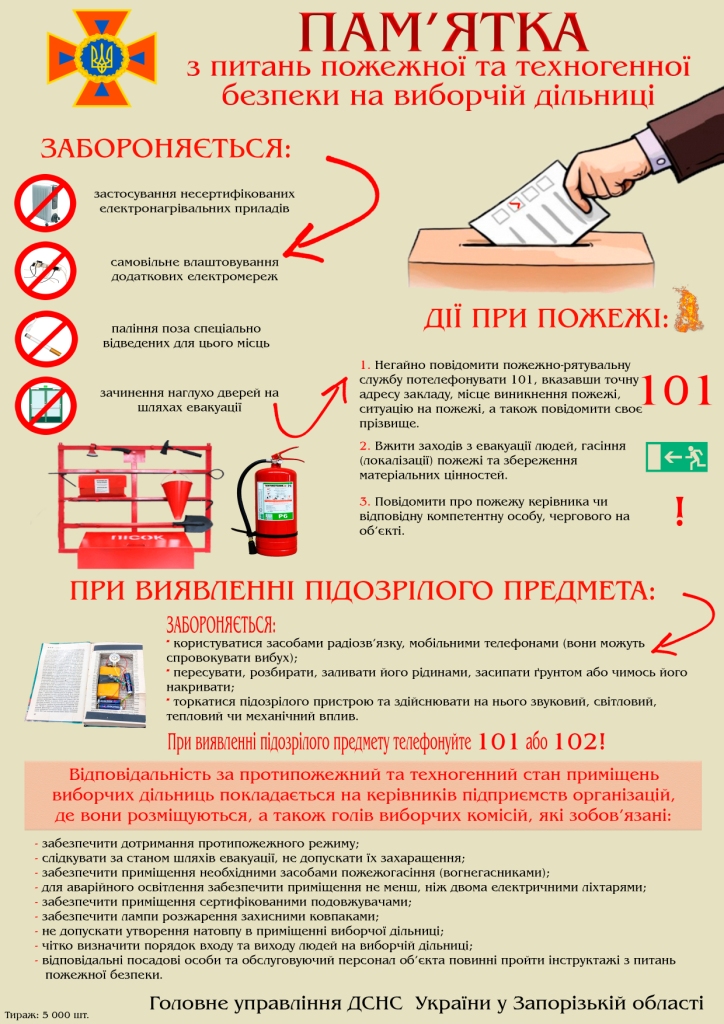 Мелитопольское горрайонное управление ГСЧС напоминает о правилах пожарной безопасности и призывает к их соблюдению на избирательных участках во время выборов президента Украины 31 марта.