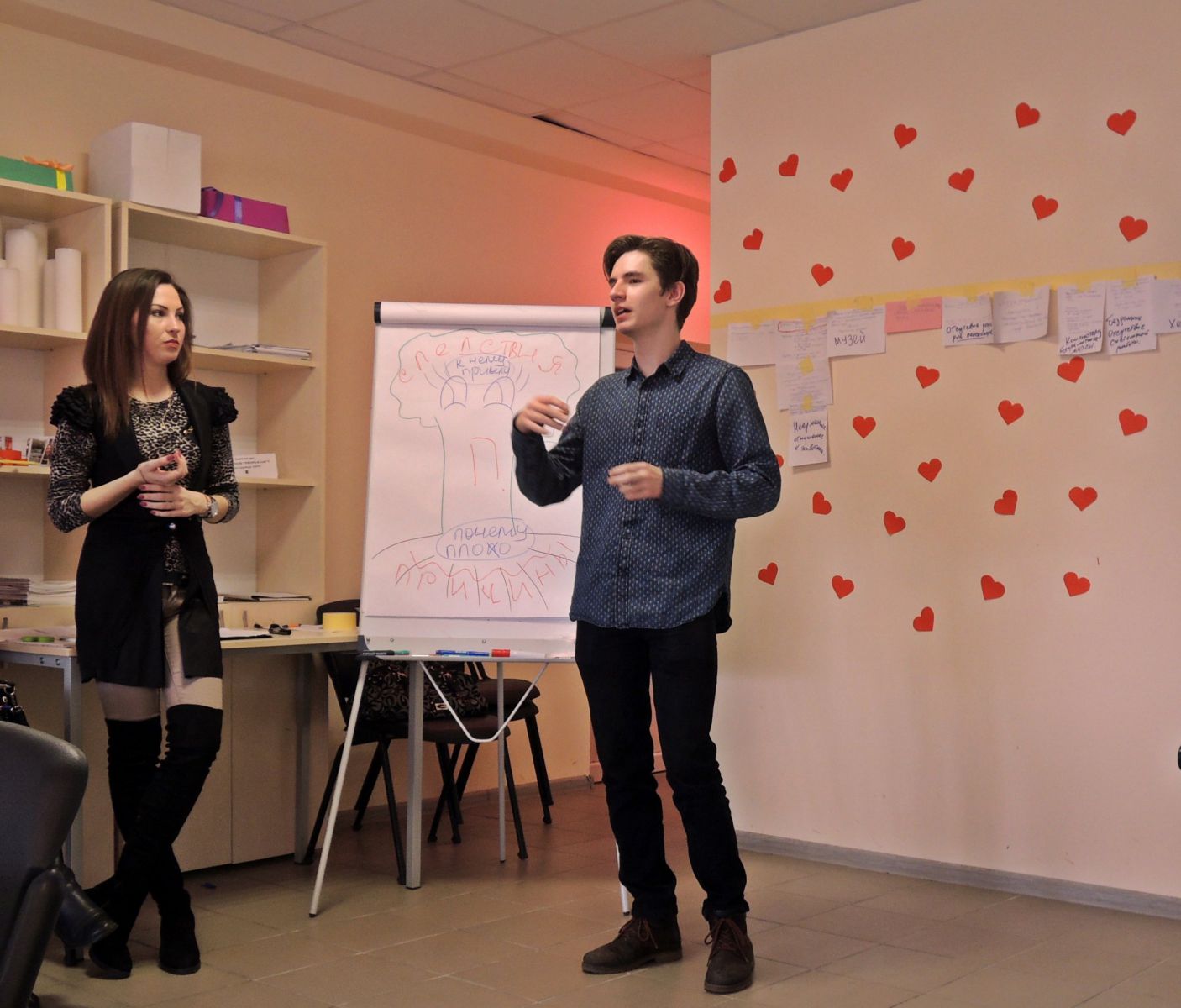 Презентация завершилась голосованием для определения приоритетности и микро-групп единомышленников. Затем активную часть сменила мини-лекция «Проект и его игроки». При помощи групповой работы с карточками-ситуациями участники тренинга закрепили понятия «стейкхолдер» (лицо, чем-то важное для проекта), «целевая аудитория», «бенифециар» (конечный выгодополучатель). Завершением тренинга стала еще одна мини-лекция - «Анатомия проектной заявки».
