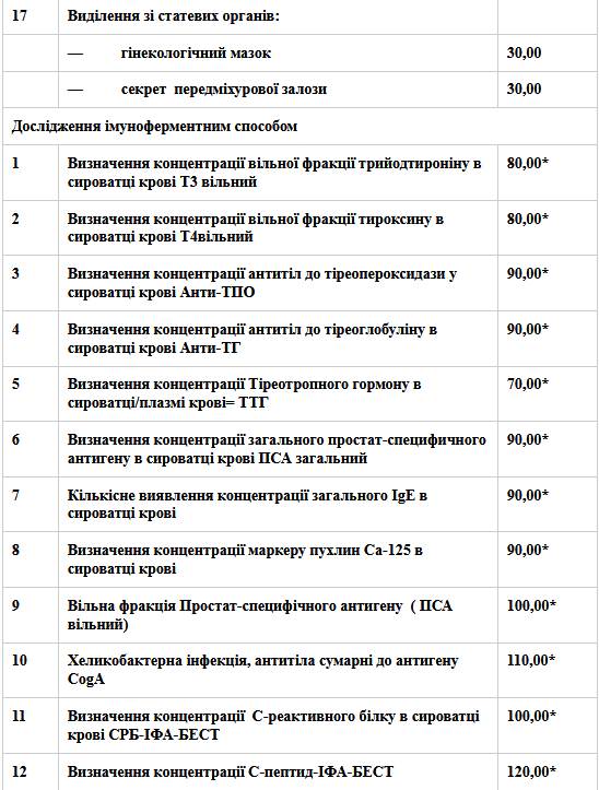 вполне адекватные цены, не сравнить с частными лабораториями. раньше многие из этих анализов можно было сдать только в частной лаборатории за совсем другие деньги, да еще и анализы делались в другом городе.