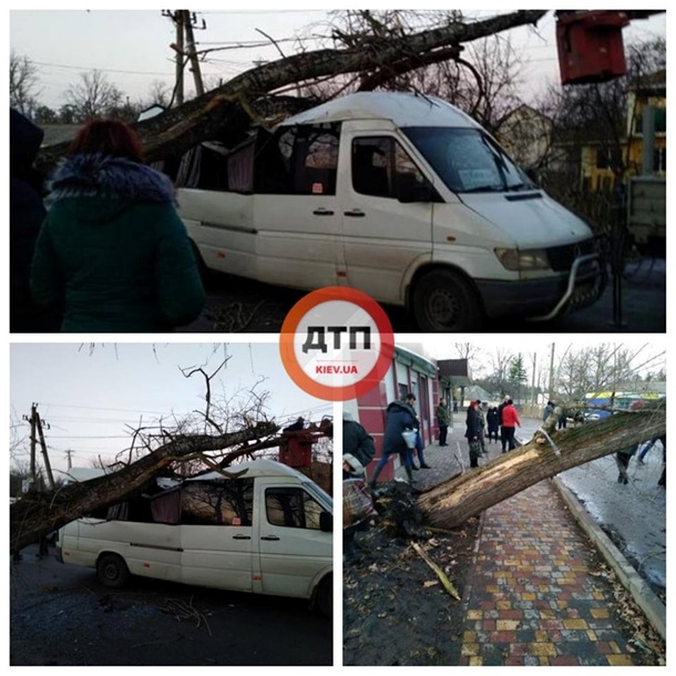 В пгт Боровая Киевской области дерево упало и придавило маршрутный автобус, в котором ехали люди. Об этом в среду, 6 марта, сообщает dtp.kiev.ua.