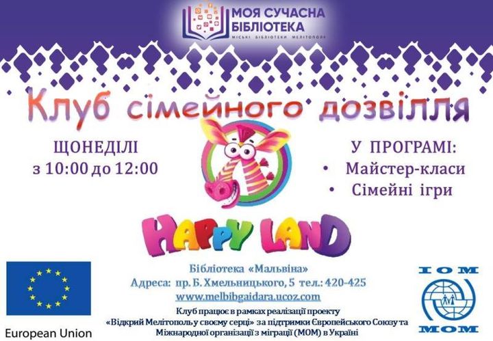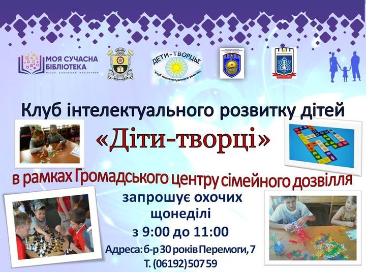 Мелитопольская городская библиотека им. М. Горького (б-р 30 лет Победы, 7) приглашает мелитопольцев в выходные посетить следующие мероприятия: