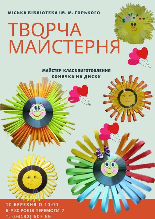 • Мастер - класс по изготовлению солнышка на диске - воскресенье в 10.00.