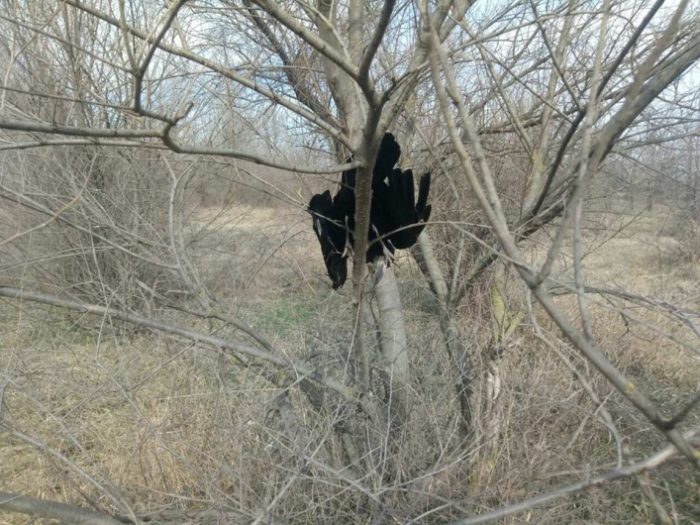 По словам местных жителей, грачи уже неделю падают с деревьев замертво. Подобная ситуация наблюдается по всему Акимовскому району.