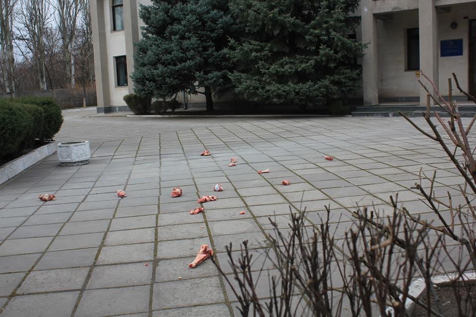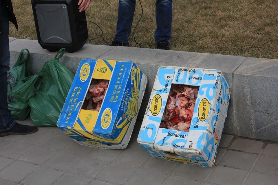 В Запорожье активисты "Авто Евро Силы" забросали костями таможню (ФОТО)