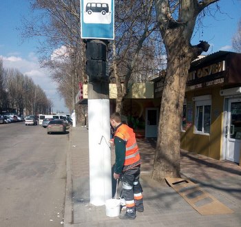 В Мелитополе коммунальщики начали красить столбы (ФОТО)