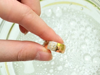 * Третий метод - использовать нашатырь (аммиак), воду и средство для мытья посуды. Все ингредиенты необходимо смешать в теплой воде, после чего опустить изделие из золота в полученную смесь на полчаса. После этого золото следует промыть в холодной воде и вытереть чистой тканью.