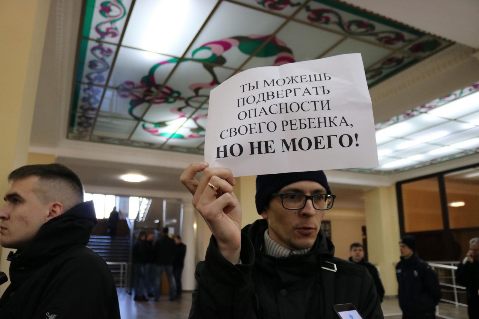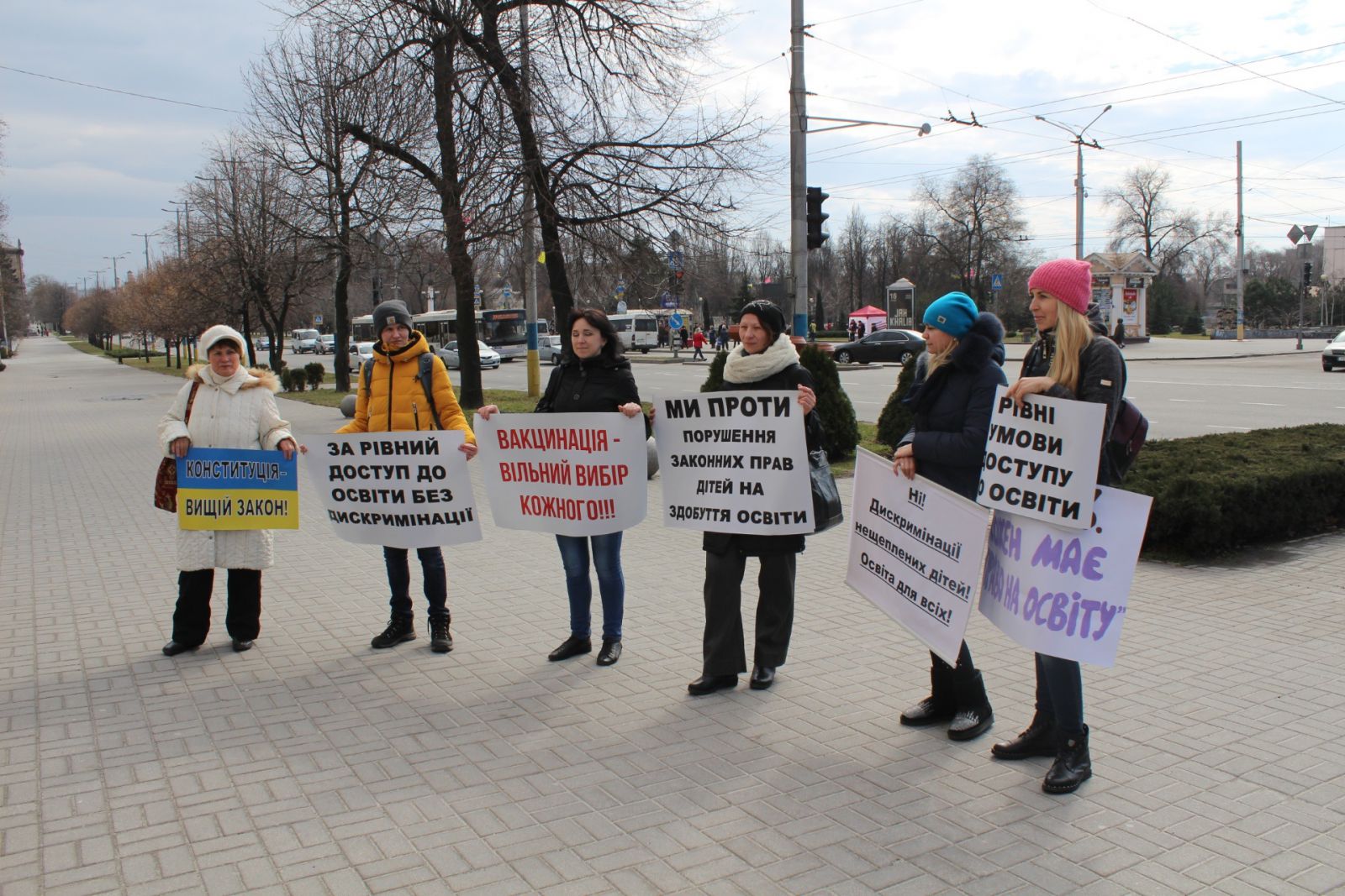 Митинг прошел под зданием Запорожского горсовета. Родители призывали к тому, что вакцинация – это дело каждого, а недопущение непривитых детей к занятием – нарушение их прав на получение образования.