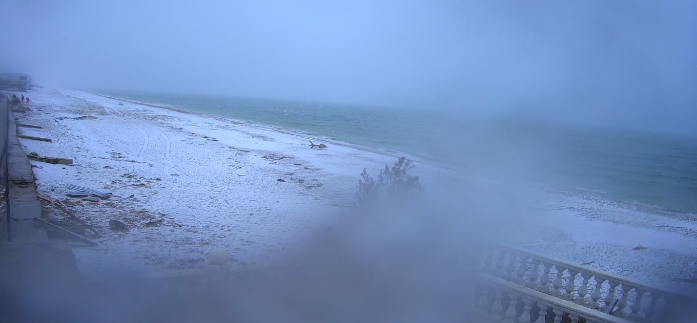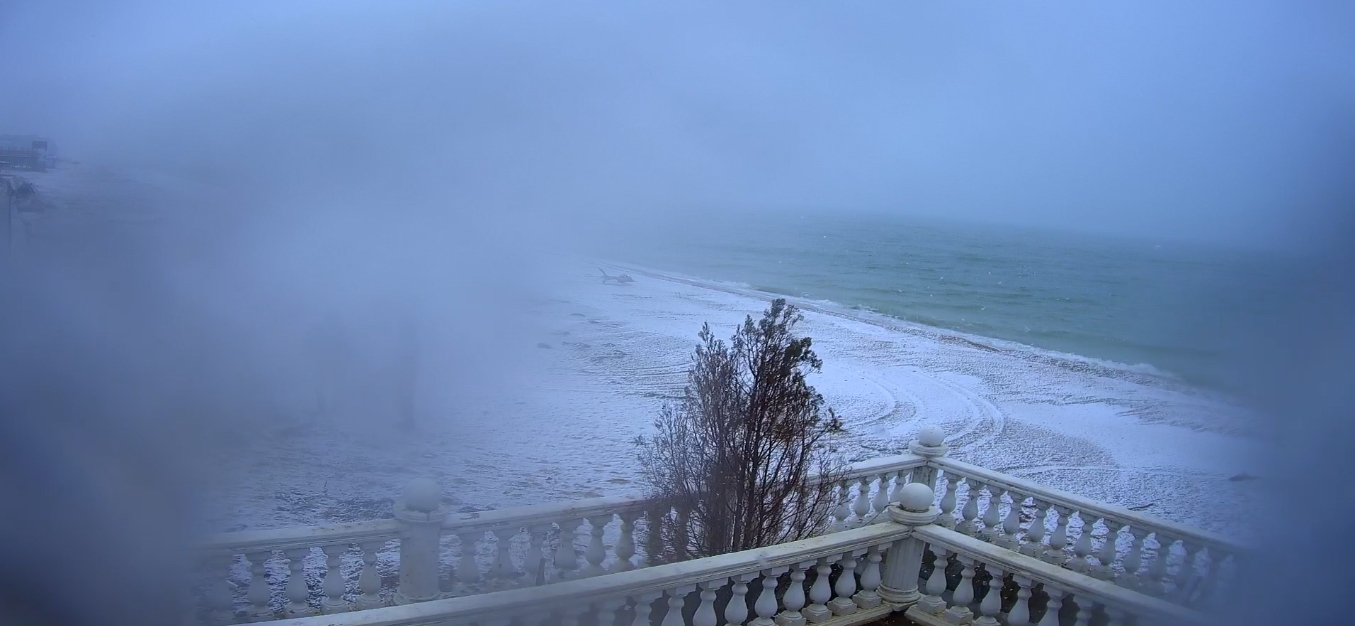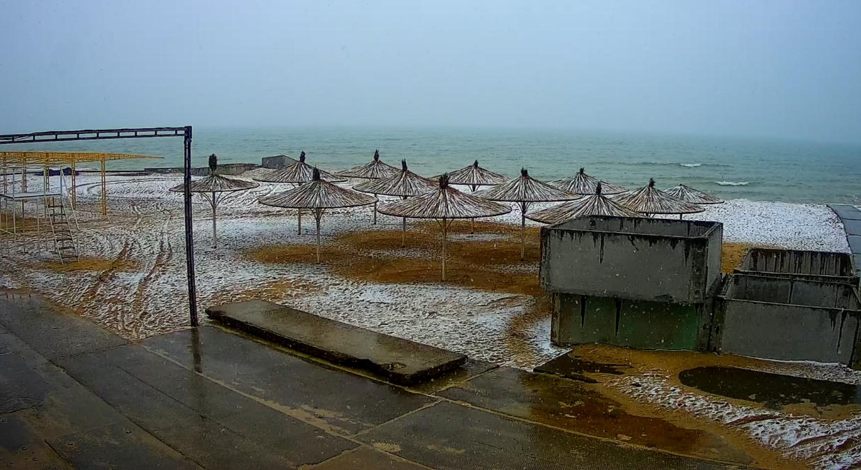 Сегодняшний снег, который так впечатлил мелитопольцев, дошел и до Кирилловки. Берег моря снова приобрел сказочный вид.
