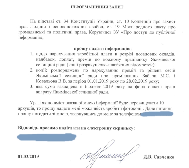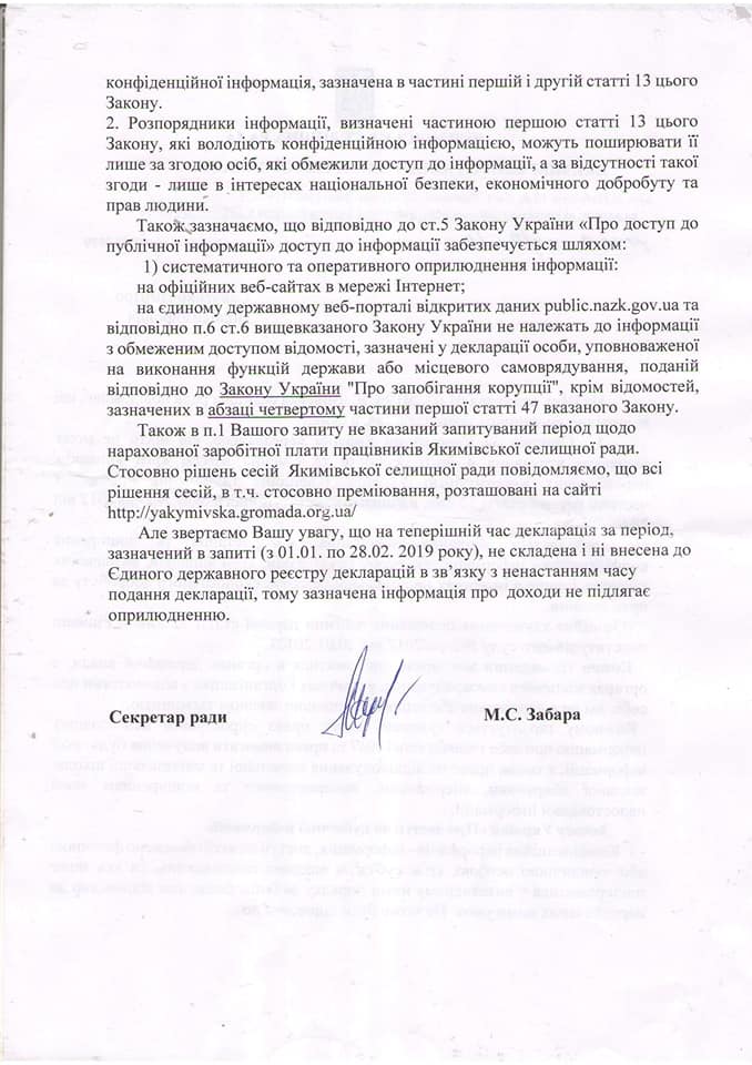 "Мы дали в поссовет запрос по зарплатам теперь уже "новой власти". Но, "новая власть" предпочла скрыть эту ПУБЛИЧНУЮ информацию от жителей громады и налогоплательщиков, которые эту власть содержат.