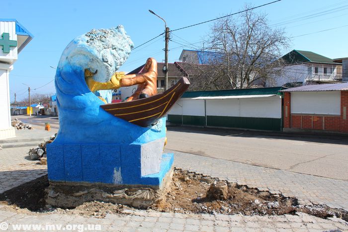 В тени зданий еще кое-где лежит снег (местные говорят, что всю зиму не было, а вот теперь природа сделала подарок). На базах уже работают ремонтники. Кто-то строит берегоукрепление, а дальше на Федотовой экскаватор выравнивает пляж.
