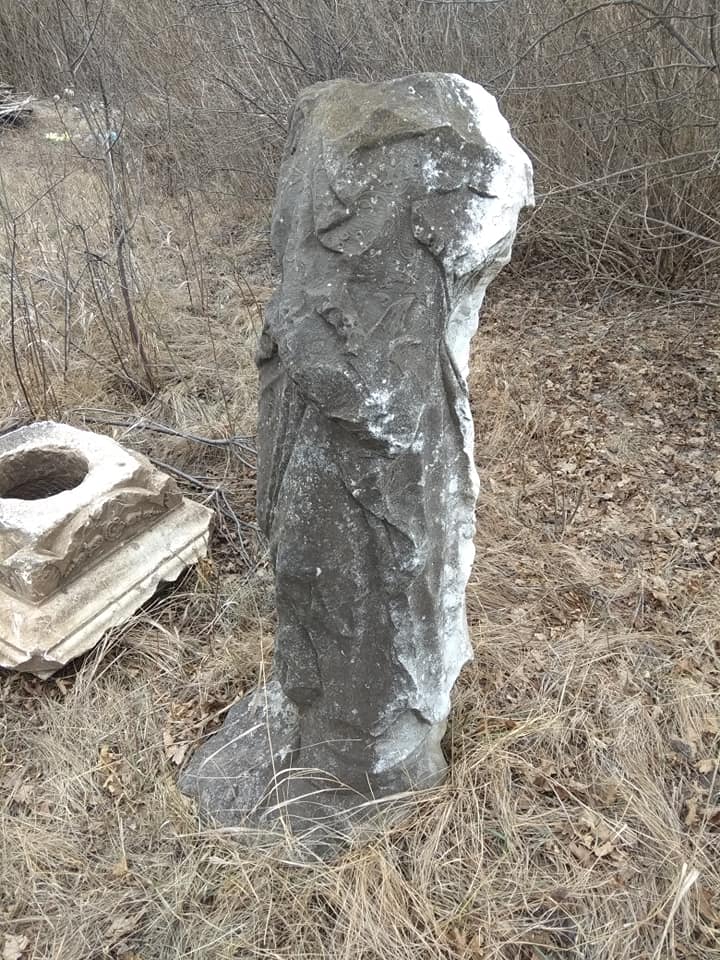 Так, активистами была найдена нижняя часть мраморной скульптуры ангела, которая стоял на надмогильной конструкции семейного склепа. К сожалению, в 1930-х годах вандалы разбили и значительно повредили скульптуру.