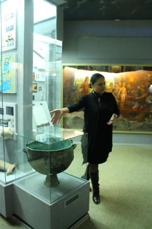 В музее есть глиняная «одноразовая» посуда, из которой ели племена кочевников, огромный чан на 40 человек, в котором варили похлебку гунны.