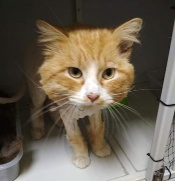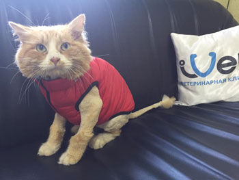 Посмотрите на это чудо, очень жалко его сидит в клетке в клинике. На улицу с такой причехой ну никак, замерзнет малыш. Этот ласковый, солнечный кот ОЧЕНЬ хочет домой.