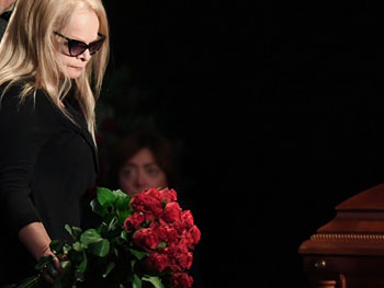 Алла Пугачева, вопреки ожиданиям прессы, на прощании не появилась. Филипп Киркоров сначала прислал большой венок, а затем пришел с желтыми тюльпанами.