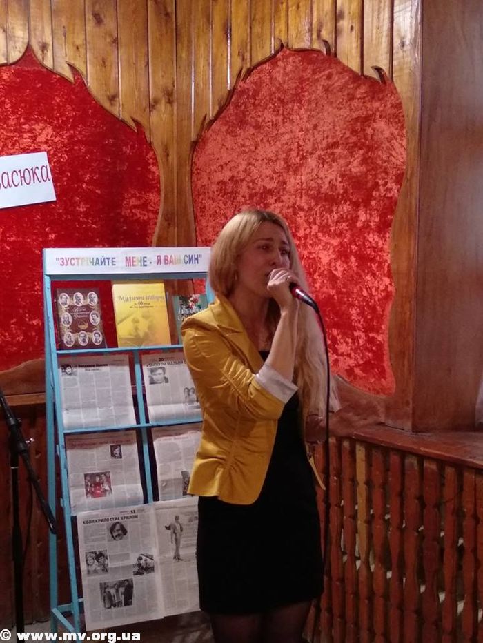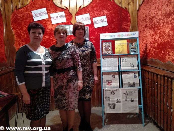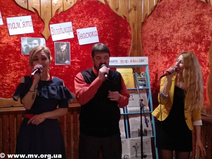 В течение всего вечера в библиотеке работала выставка выписок из газет и журналов об В. Ивасюке под названием «Зустрічайте мене, я ваш син!». На ней были представлены и книги, в которые вошли произведения этого музыканта.
