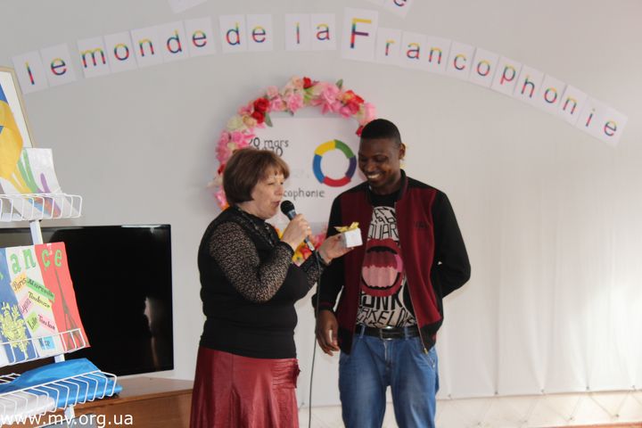 Вместо посла Франции в Украине мероприятие посетил другой иностранный гость – студент магистратуры одного из мелитопольских вузов, житель Гвинеи Сори Сорикам. Мелитопольским школьникам он пожелал успехов в изучении французского языка, и это была единственная на фестивале русскоязычная фраза.