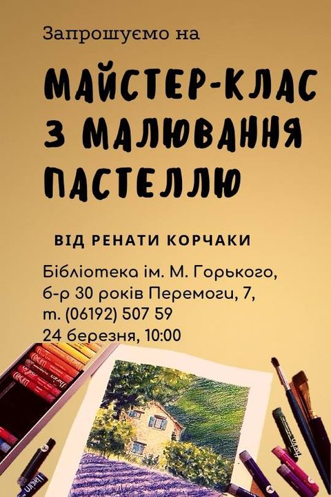 • мастер-класс по рисованию пастелью от Ренаты Корчаки - воскресенье в 10.00.
