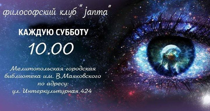 Мелитопольская городская библиотека им. В. Маяковского на выходных проведет заседание философского клуба «Janma» - суббота в 10.00.