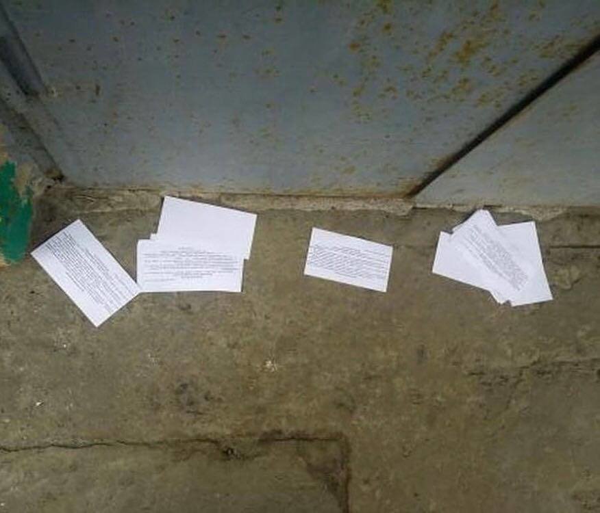 В пятницу, 22 марта, жители одного из многоэтажных домов получили свои приглашения весьма оригинальным способом. Листовки были разбросаны по подъезду, а также у входной двери.
