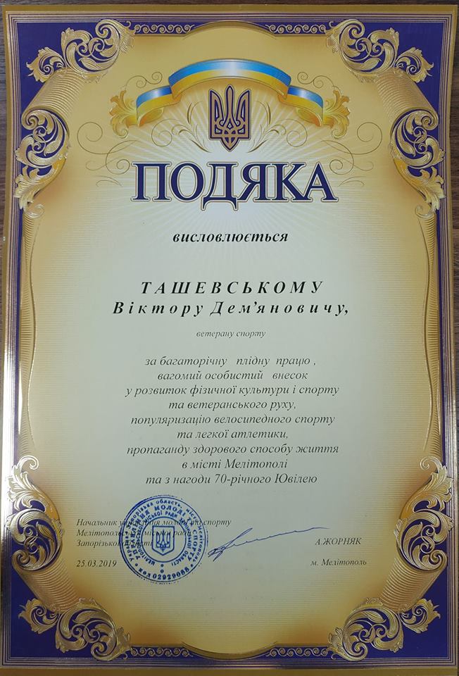 И вот сегодня один из этих «дедов» - Виктор Демьянович Ташевский - празднует свое 70-летие. Об этом на своей странице в «Фейсбук» сообщил начальник управления молодежи и спорта Андрей Жорняк.