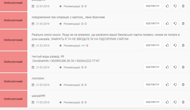 - «Реально зняли кошти. Якщо ви не впевнені, що реквізити вашої банківської картки якимось чином не попали в руки шахраїв, замініть її та не вводьте їх на підозрілих сайтах».