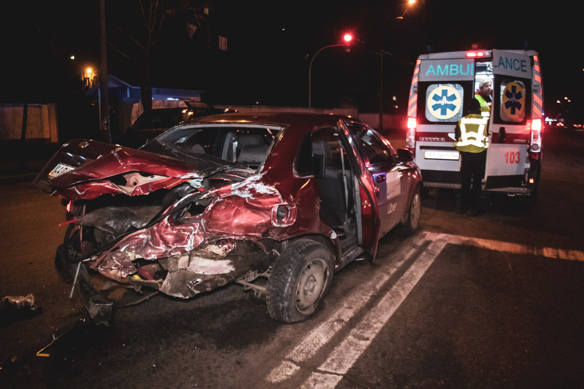 Инцидент произошел около 01:40 на проспекте Валерия Лобановского, 119. В аварию попали сразу шесть авто: Lada Kalina, Chevrolet Lacetti, BMW X6, Mitsubishi Lancer, Renault Logan и Daewoo Nexia.