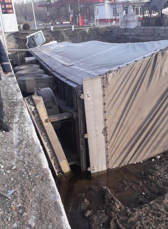 В Запорожской области грузовик съехал с моста и перевернулся (ФОТО)