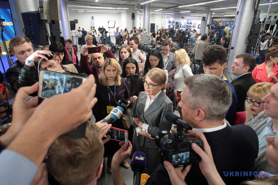 Штаб Зеленского был вторым. Наш вояж началася с «Батькивщины». Мы приехали в пресс-центр кандидата президенты Юлии Тимошенко на улице Десятинной за час до объявления результатов национального экзит-пола.